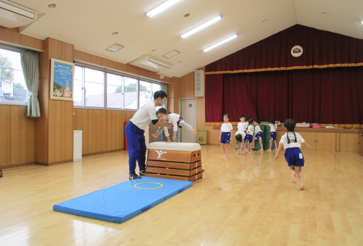 体操の専門講師により、週1回年齢別に行っております。楽しさを感じながら体を動かすことはもちろんですが、その中で友達と協力すること、ルールを守ることにも重点を置いて指導を行なっております。