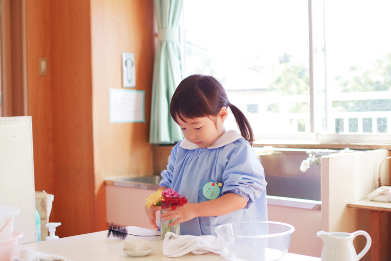 イタリアの医学博士でもあったマリア・モンテッソーリ(1870〜1957)が子どもと観察する中で発見し、開発した教育法です。この教育法の具体的な分野は、5つあります。「日常生活の練習」「感覚教育」「言語教育」「数教育」「文化の教育」です。保護者は、子どもの「ひとりでできるように、てつだってね」という心からの要求に応えるために子どもに適切な環境(教具・教材)を用意し手助けをしていきます。
