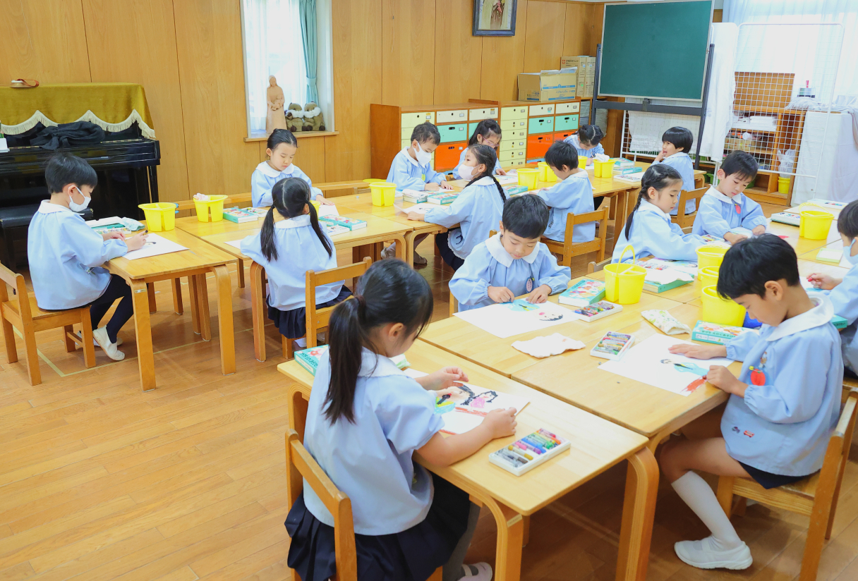 子どもたちは、朝と帰りの時間にお祈りをし聖歌を歌い毎日幸せに過ごせることを感謝する時間を持ちます。