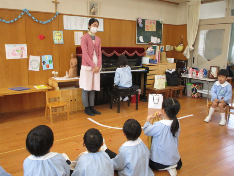 2026.01.16 12月・1月生まれのお誕生会 今日は12月・1月生まれのお友だちのお誕生会でした。3学期になって自己紹介、見るお友だち皆とても上手でした。先生たちの出し物は、合奏でした。一緒に歌って、楽しいお祝いが出来ました。 ※クリックすると拡大して表示されます